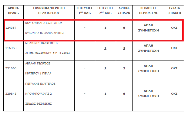 Το τυχερό δελτίο παίχτηκε στο πρακτορείο του Στράτου Κουρουπάκη στα Χανιά στην οδό Κυδωνίας 87, και με απλή συμμετοχή κέρδισε 27.241,95 ευρώ.